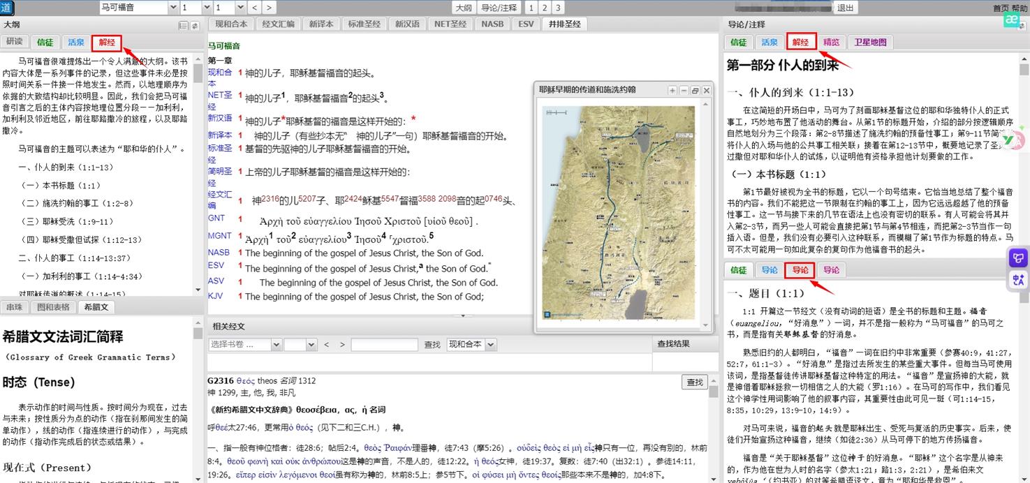 使用说明:您只需注册研经工具账号,进入马可福音页面,在标签中选择“解经”,即可查看该注释的大纲、导论及详细内容。