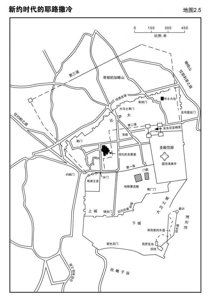 [31] 此地图引自Merrill F. Unger, Unger’s Bible Handbook, p. 488。有关耶路撒冷的地理环境,可参The Bible Dictionary里的一篇文章“Jerusalem”(J. D. Douglased., pp. 614-620)。