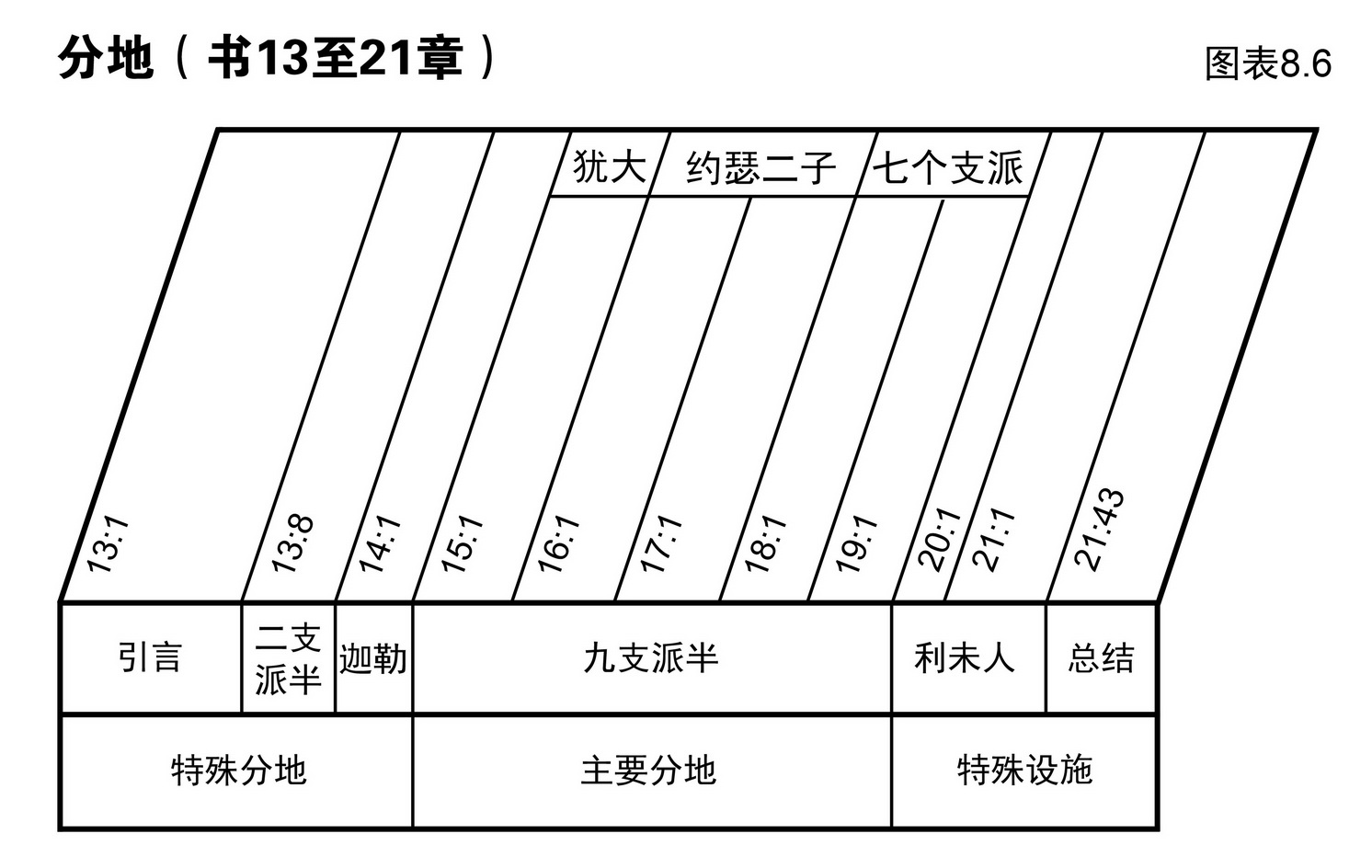 图表8.6说明分地给各支派和某些人的情形。