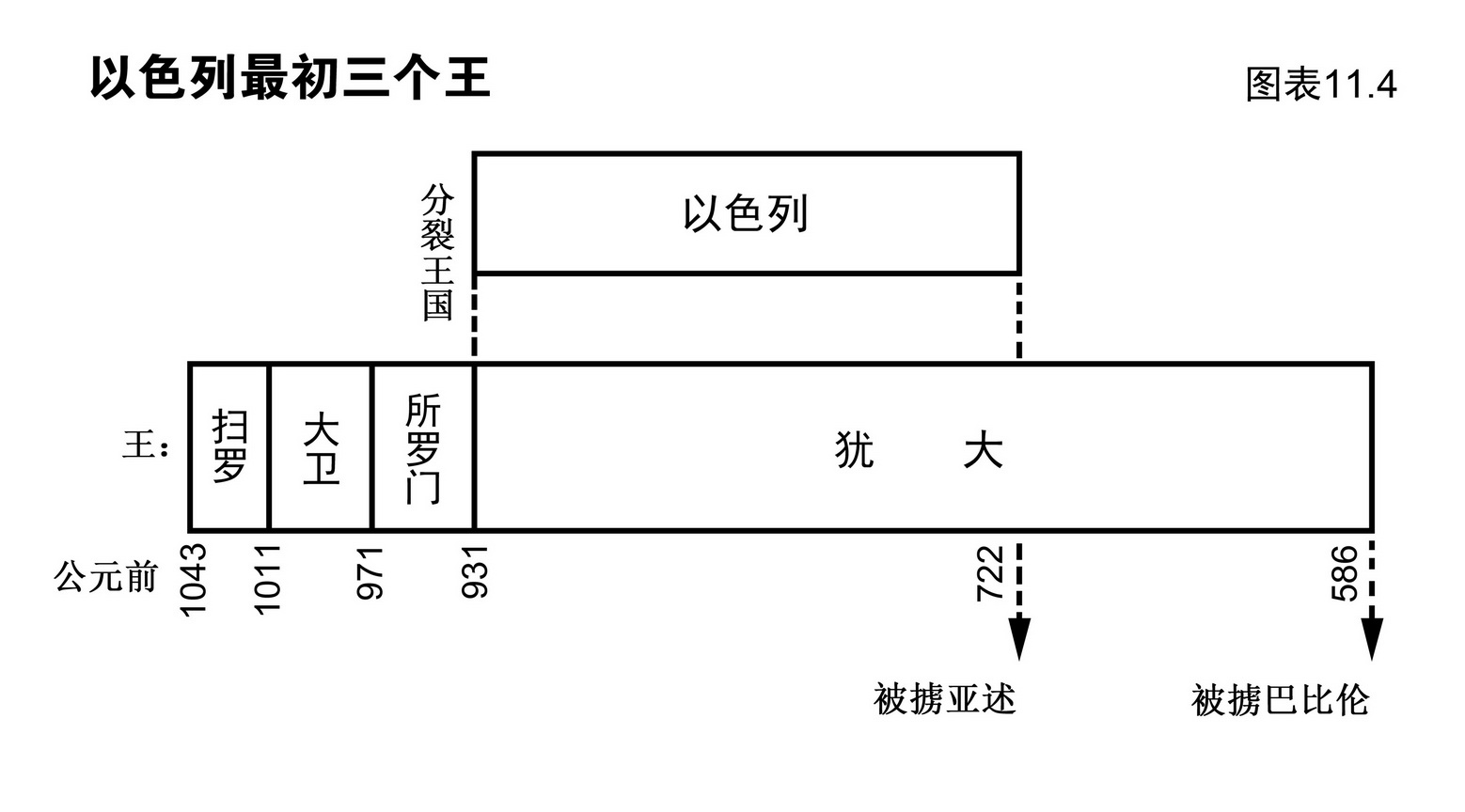 扫罗、大卫是以色列最初的两位王,第三位是所罗门。请参图表11.4。