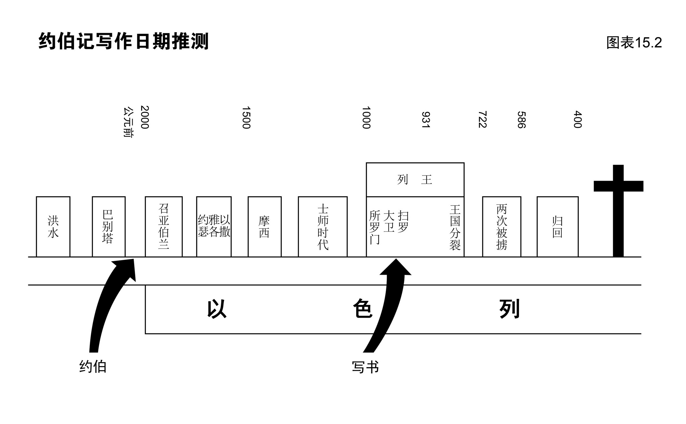 约伯所生的时代,以及著作约伯记的时代,大约如图表15.2所示。