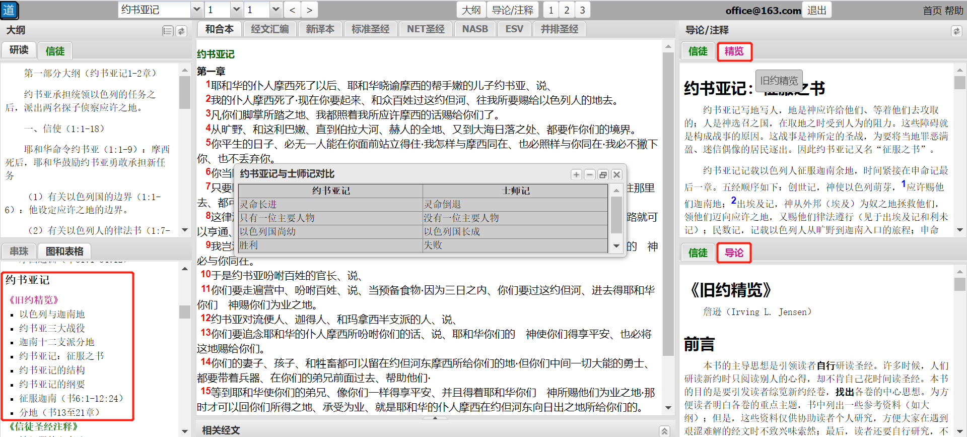 研经工具→注册/登录→选择约书亚记→资源选择《旧约精览》