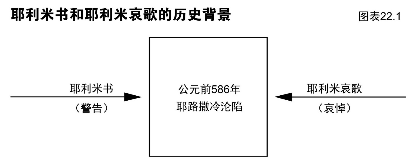 第二十二章 耶利米哀歌:哀悼苦难 公元前586年耶路撒冷沦陷是耶利米书和耶利米哀歌的历史背景。耶利米书预言圣城的沦陷;耶利米哀歌则在极度痛苦中回顾圣城被毁。 从耶利米书的预言,我们可以看到先知为同胞面